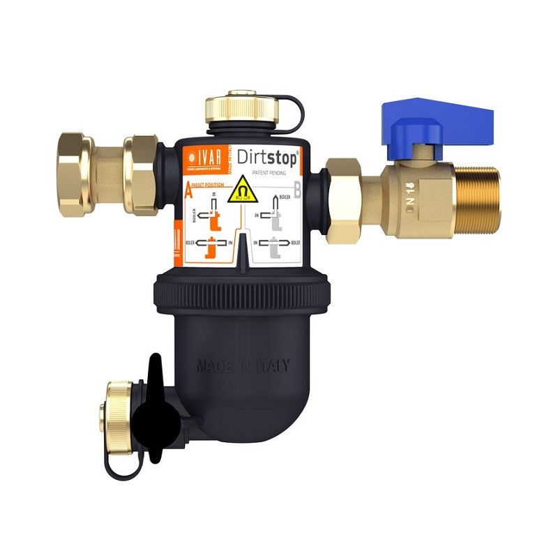 Dirtstop este un filtru separator compact de impuritati proiectat de IVAR, esential pentru cei care doresc sa prelungeasca durata de viata a centralei prin imbunatatirea schimburilor termice si eficienta generala a sistemului, garantand protectia impotriva coroziunii si curatarea constanta a tevilor