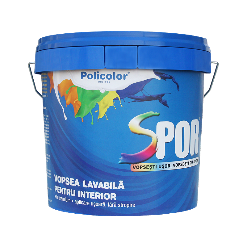 DESCRIERE: Vopsea lavabilă SPOR pentru suprafețe interioare cu lavabilitate excelentă și putere mare de acoperire.