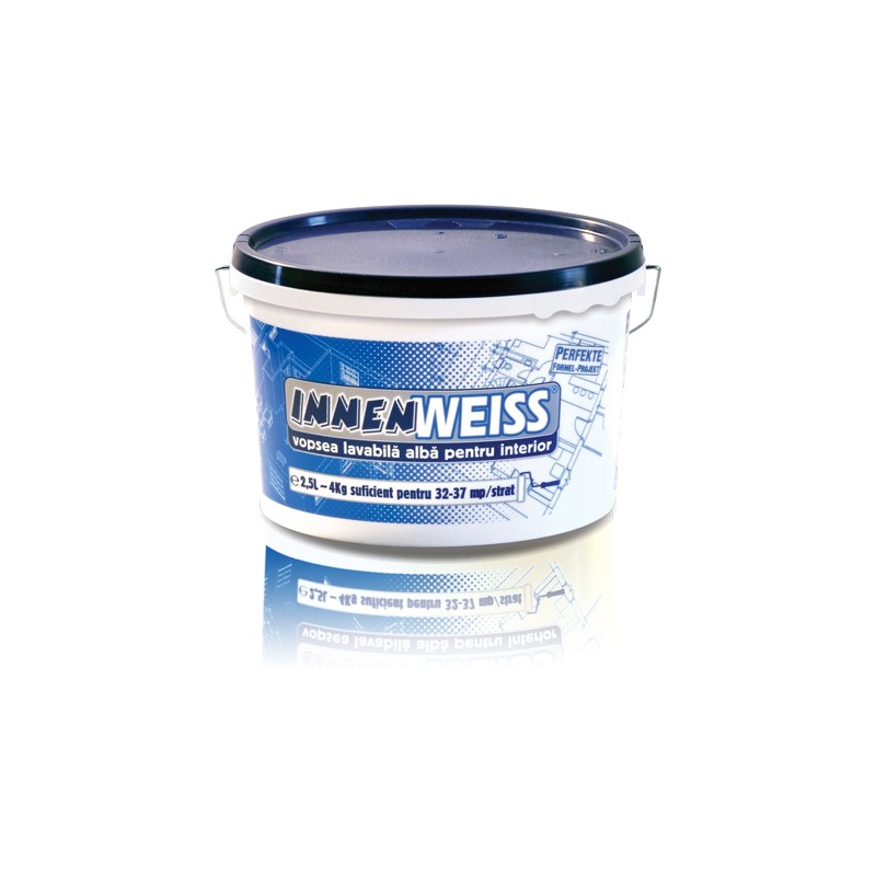 Vopsea lavabilă pe bază de copolimeri acrilici în dispersie apoasă, pigmenti, extenderi ÅŸi aditivi. Prezintă aplicabilitate buna, putere de acoperire ridicată ÅŸi aderenţă bună la suportul pregătit corespunzător. Realizează pelicule lavabile ÅŸi permeabile la vapori. Se poate nuanÅ£a cu INNENCOLOR - ColoranÅ£i manuali pentru vopsea lavabila.Â